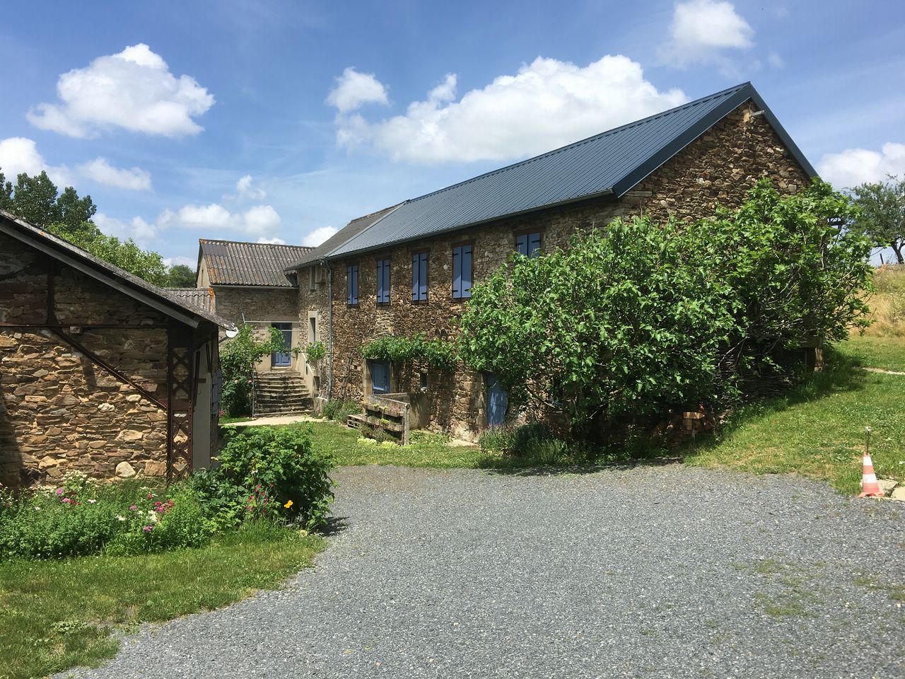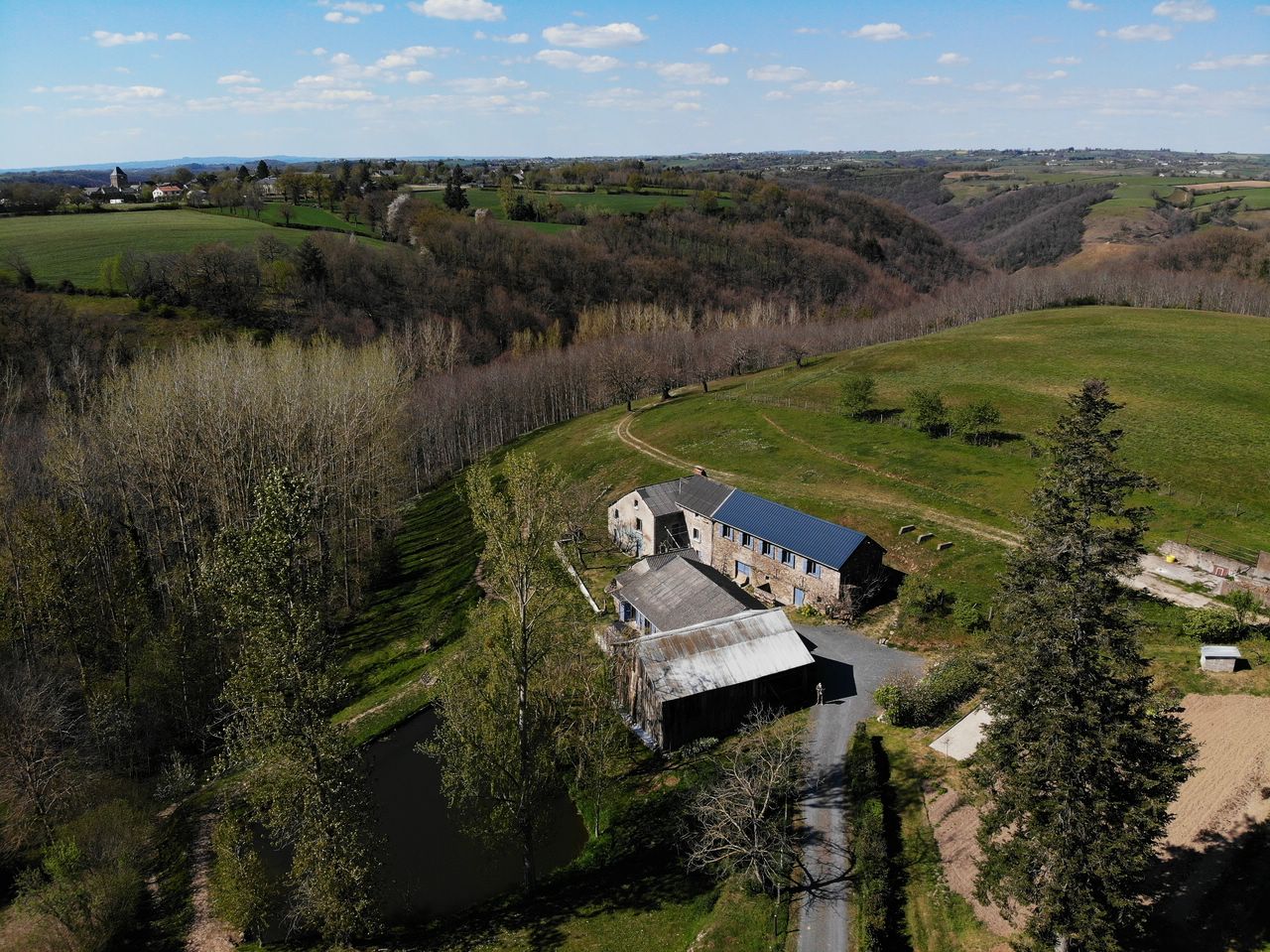 Le Bouscaillou est l’ancienne ferme familiale des parents de Françoise, située à Lédergues dans l’Aveyron sur le plateau du Lévézou, à la limite de la frontière avec le département du Tarn. Cette ferme était une exploitation principalement orientée sur l’élevage de veaux sous la mère et de cochons. Les volailles, poules, canards, oies, pintades, étaient élevés pour la consommation familiale. Pas de brebis dans cette ferme, pourtant le lait produit dans le secteur est ramassé pour la production du Roquefort.